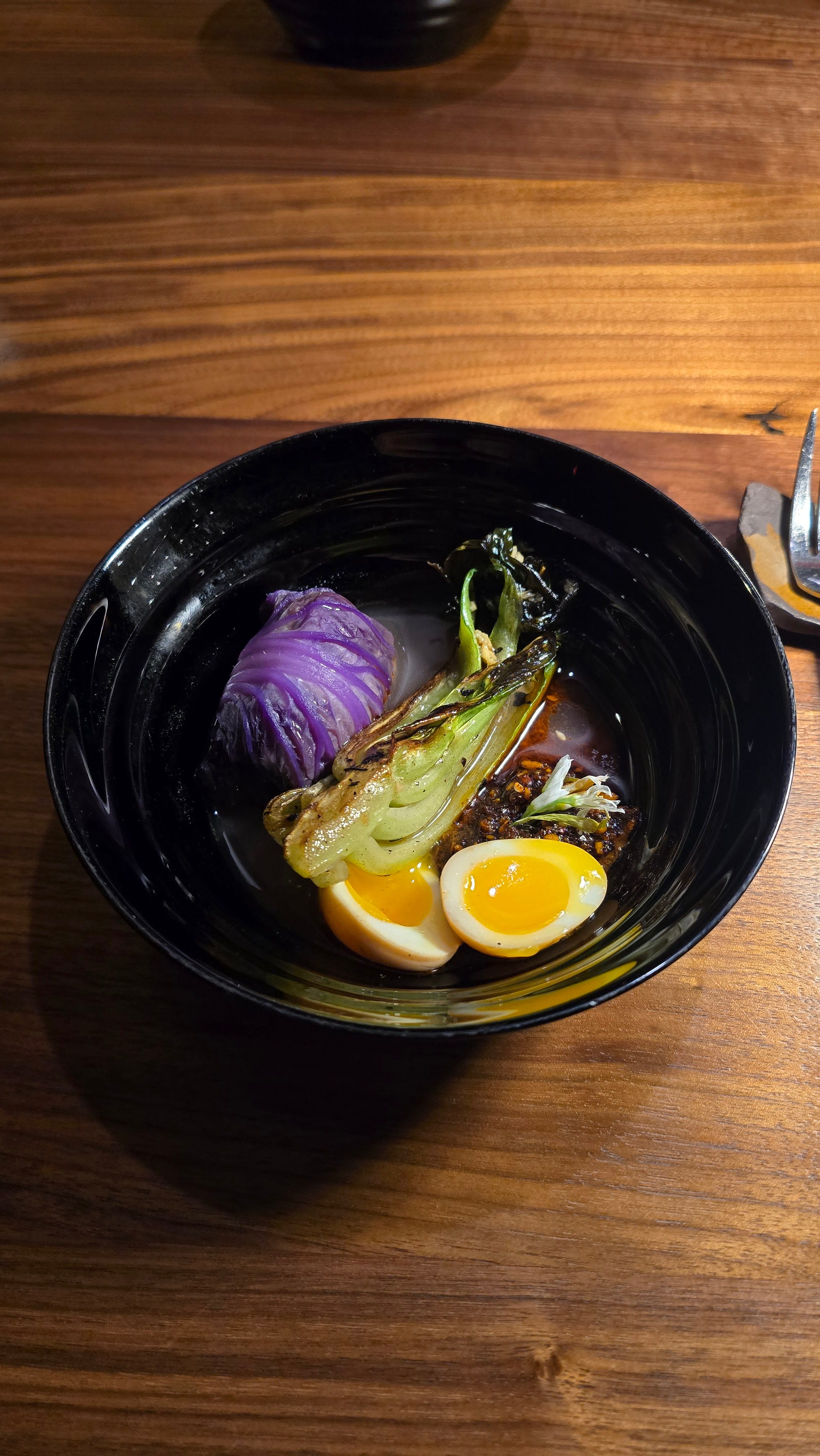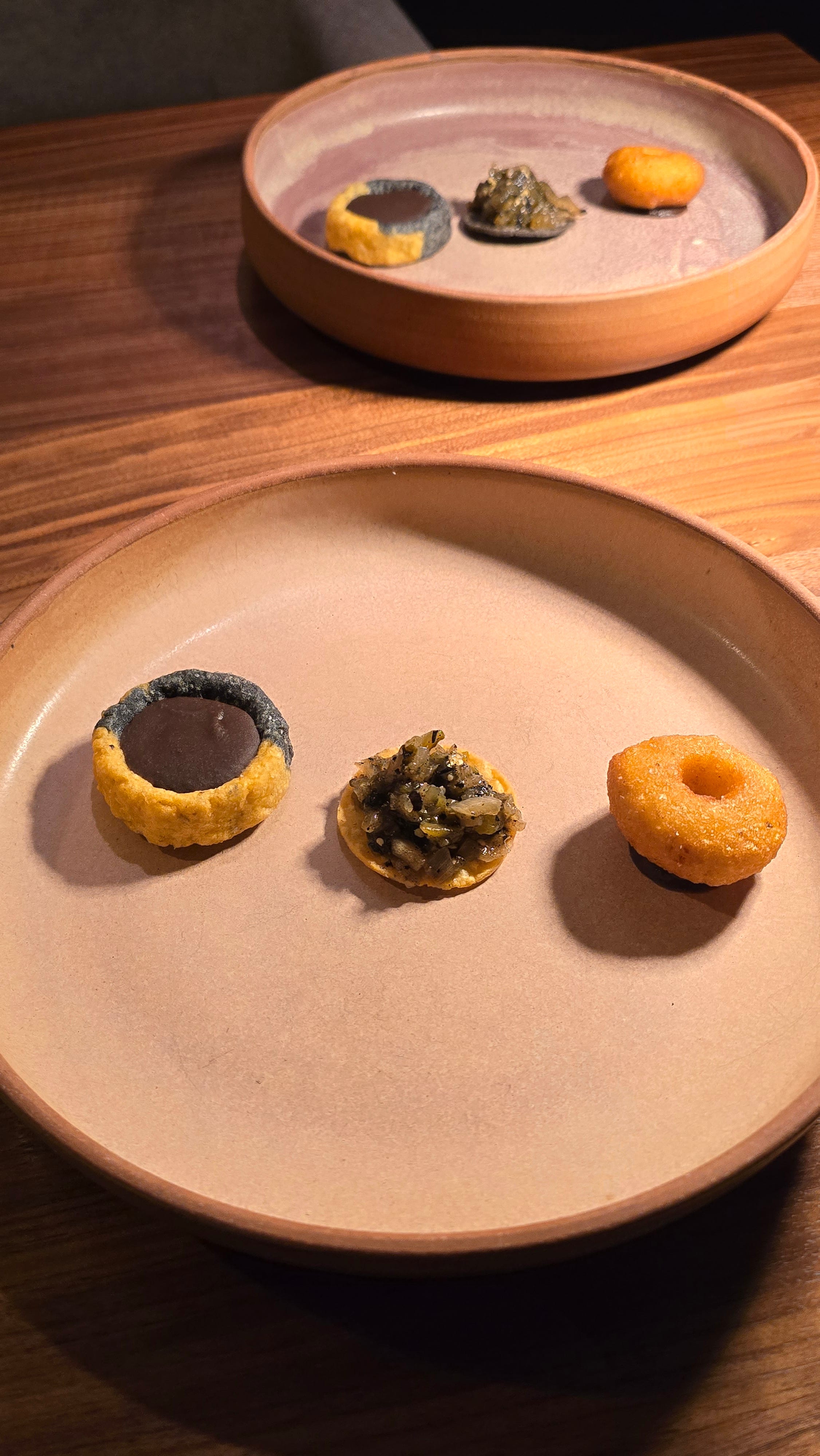 In the center, a salsa negra built from black garlic, chile ancho, chile sandía, black garlic, and soy sauce acting as the bridge; the binding agent that pulls Japan and Mexico into the same sentence.